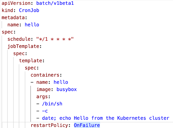 - spec.jobTemplate : 어떤 작업을 실행할 지 설정함