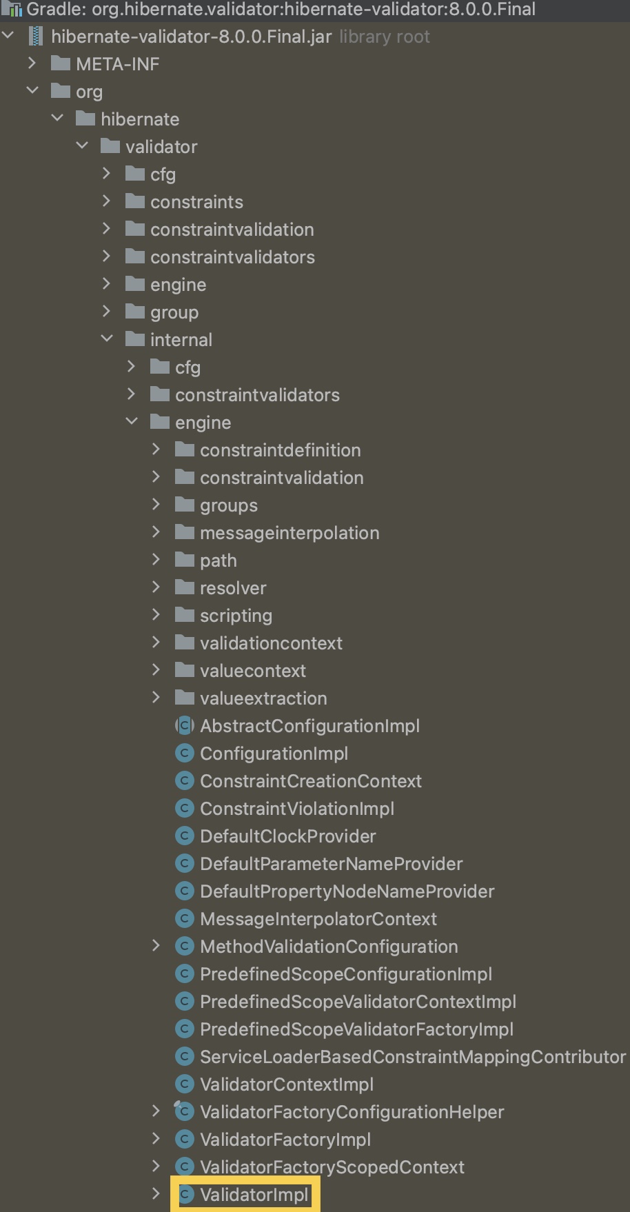 - JSR-303 표준을 따르고, Spring 내에서 컴포넌트와의 통합을 위해 통합포인트 클래스로 쓰입니다.
