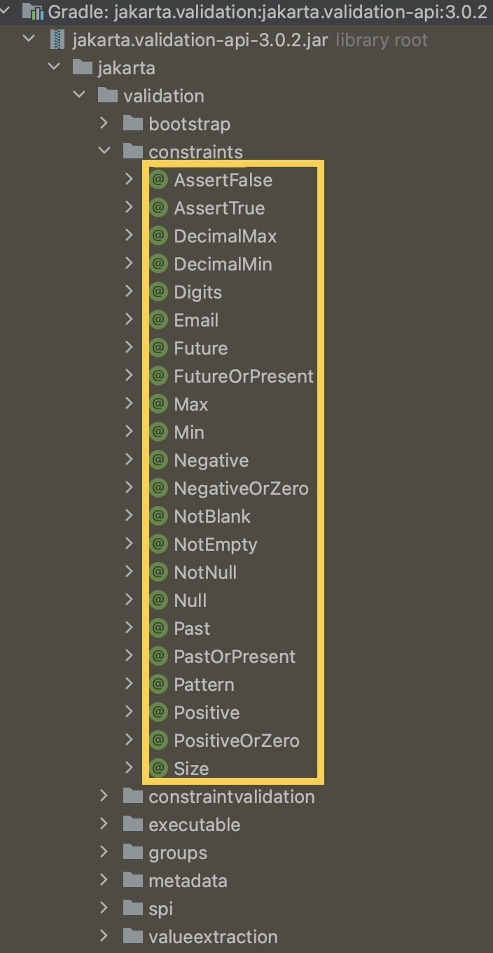 - Jakarta Bean Validation에 대한 스펙은 JSR-303 에 정의되어 있습니다.