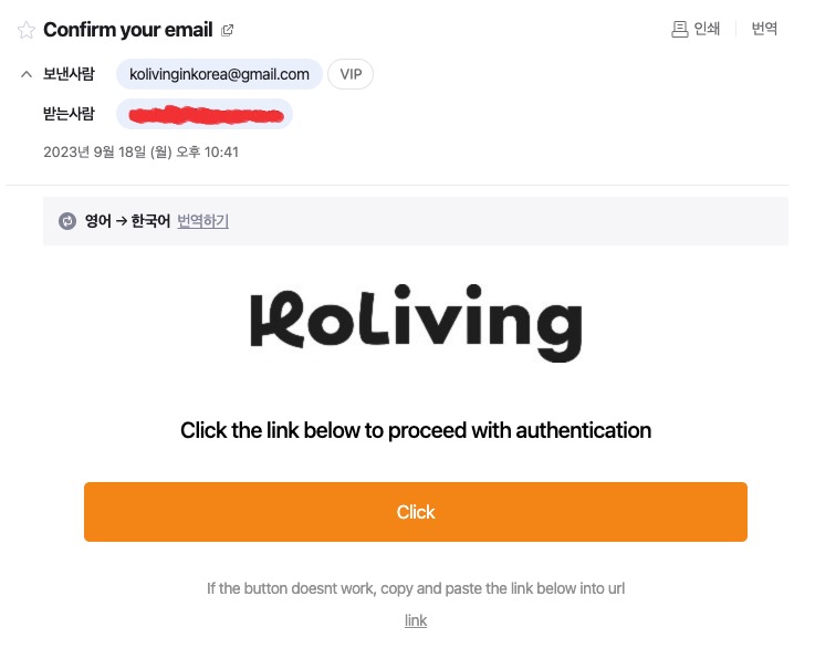 2. 인증 이메일을 발송합니다.