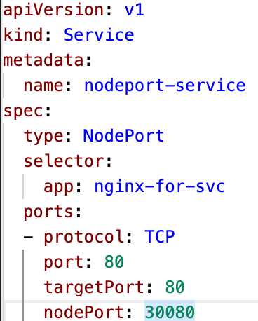 서비스에 할당된 노드의 지정된 포트를 할당함.