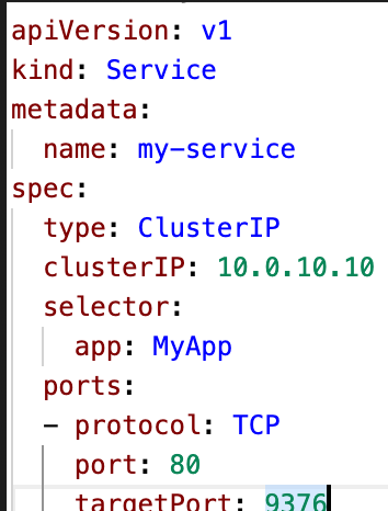 - spec.clusterIP : 클러스터 IP를 직접 설정할 수 있음.