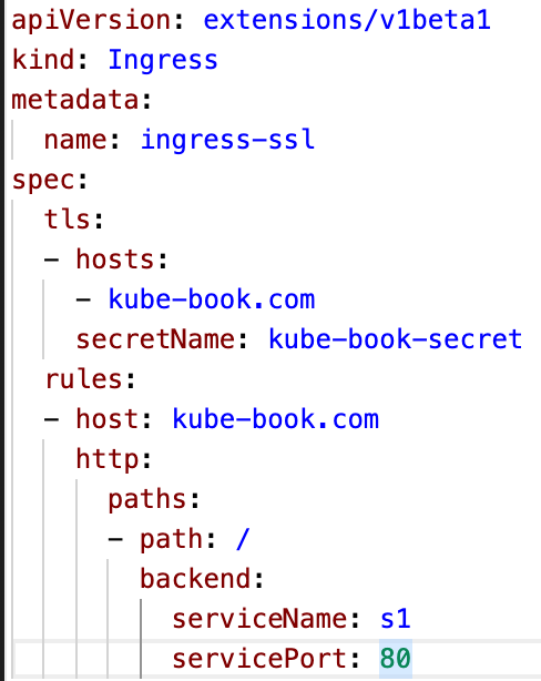 - spec.tls[].secretName 필드에 시크릿 이름을 적어줌
