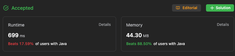 - 공간복잡도 : O(n) - 단어 방문시 단어를 Set에 저장함