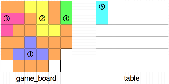 - game_board에 있는 빈칸들과 table에 있는 퍼즐들을 각각 List에 담습니다