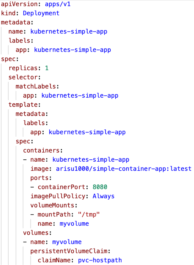 - spec.template.spec.volumes[].name : 사용할 볼륨 설정