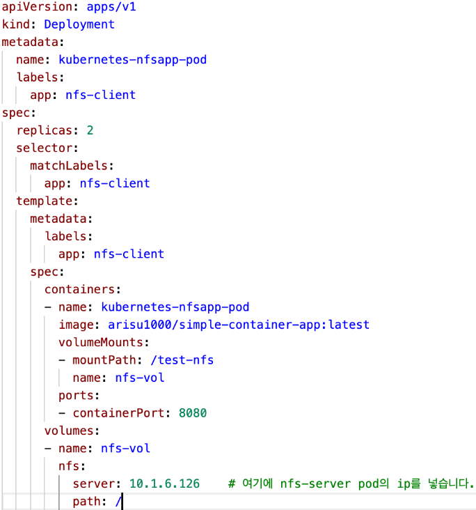 기존에 사용하는 NFS 서버를 이용해서 파드에 마운트함.