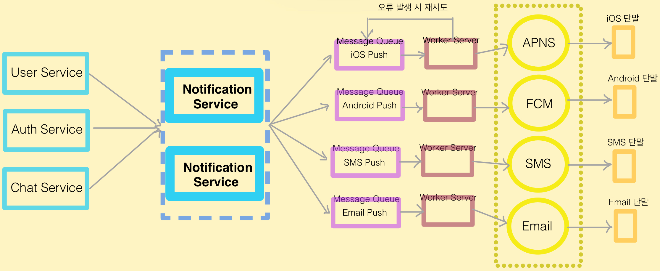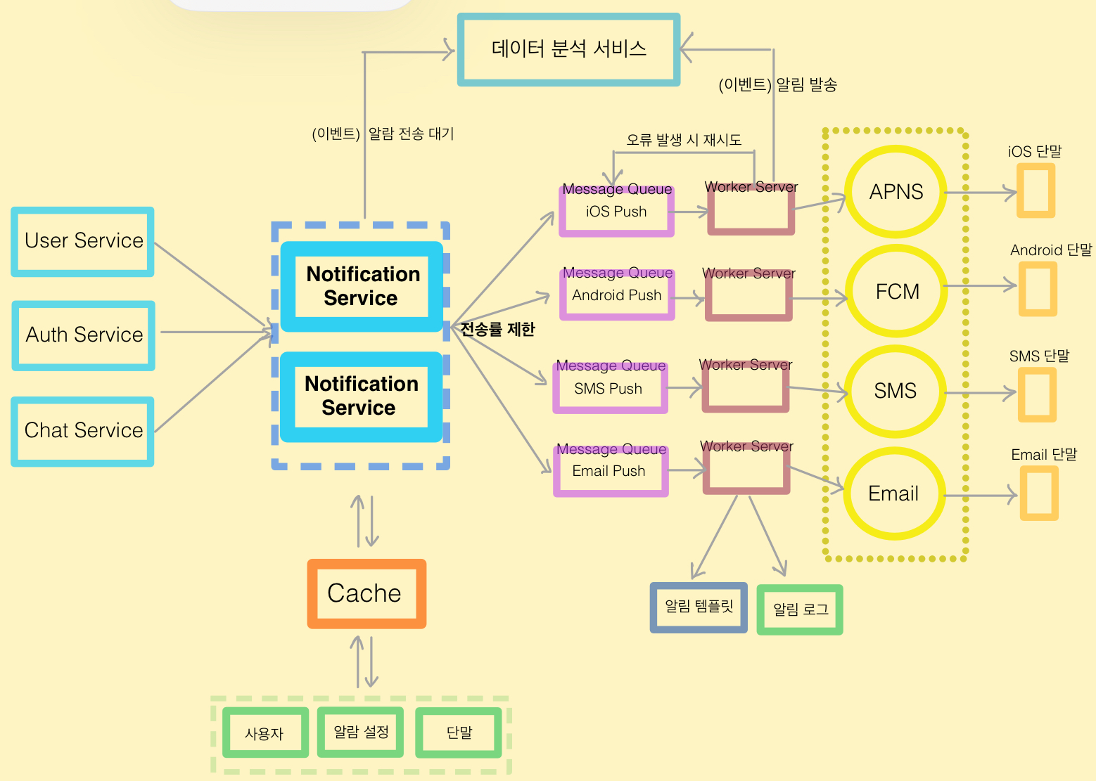 | 3rd-Party 서비스 | 실제 알림을 사용자에게 보내는 외부 채널 |