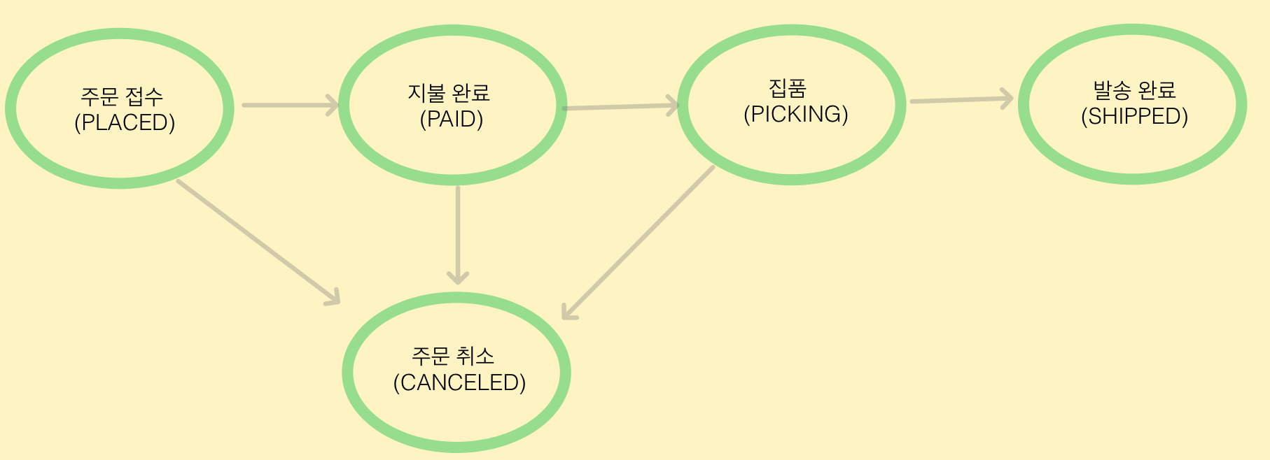 - 주문 애그리거트와 관련돼 가능한 상태 전환을 관리함