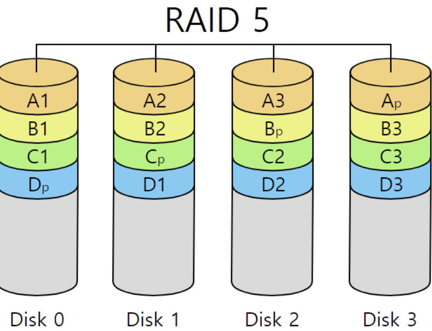 - 모든 페리티 계산이 하나의 디스크에서만 이루어지므로