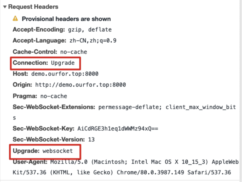 - Sec-WebSocket-Key 와 Sec-WebSocket-Version, Upgrade: websocket 등의 헤더가 필요하다.