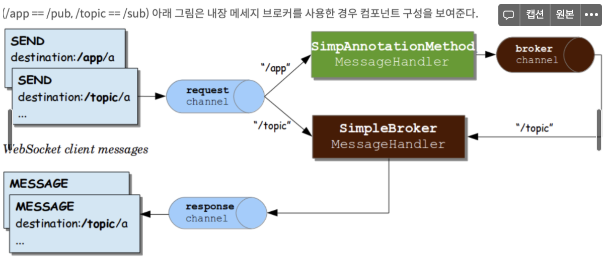 웹 소켓 관련하여 정리가 필요하여 spring document 내용을 발췌 하여 필요한 부분만 정리했다. 공유용 보다는 개인적인 정리용으로 크게 도움이 되지 않을 수 있다. 출처 : https://docs.spring.io/spring-fram