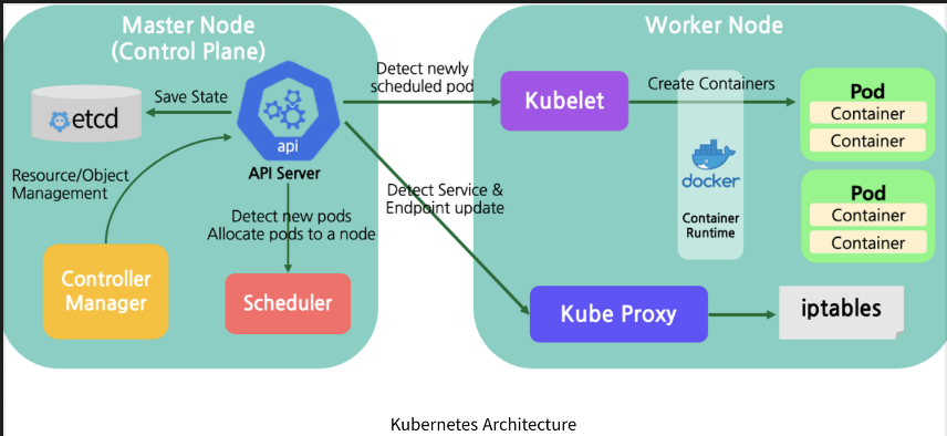 1.Kubelet : 각 노드에서 실행되는 agent. pod에서 컨테이너가 확실하게 동작하도록 관리함. API Server를 모니터링하며 해당 Node에 scheduling되는 pod을 감지하고 pod에서 container을 실행시킴
