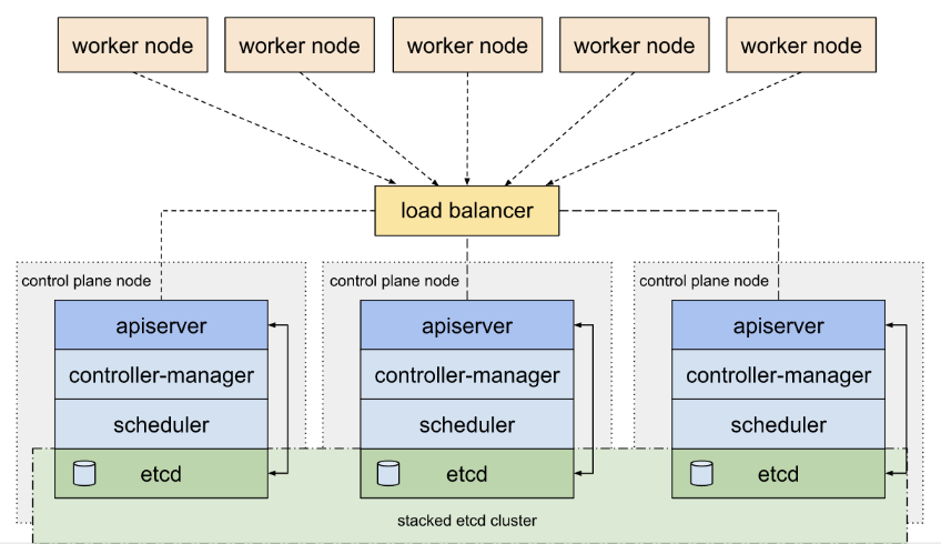 etcd클러스터를 마스터 노드와 함께 설치해서 운용하는 방식