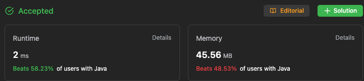 - 공간복잡도 : O(1) - n개 원소를 돌아도 반복문 안에서 선언되는 변수는 없으므로 상수값만 메모리에 잡힘