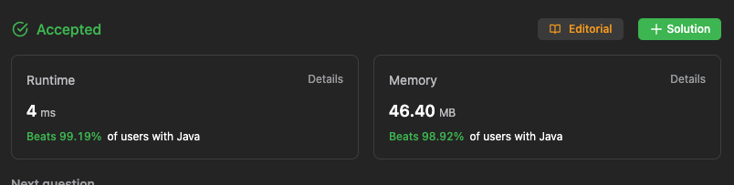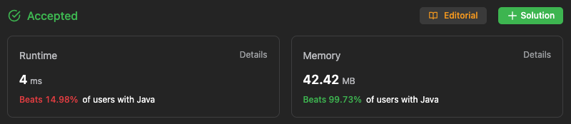 난이도 : medium 문제링크 peak element : 이웃보다 큰 노드 peak element의 인덱스를 리턴하라 peak element는 복수개가 될 수 있으나, 어느것중 하나만 정확하게 리턴하라 시간복잡도 O(logn) 성능의 알고리즘을 작성하라 1 left) { mid = (right + left)/2 + 1; if (nums[mid] > nums[mid-1]) { left = mid; } else { right = mid-1; } } return right; } } 투포인터를 두고, 각 포인터의 중간값과 중간값의 직전값을 비교함 중간값이 크다면, 가장 큰 값의 인덱스 범위는 mid ~ right 안에 있으므로 left를 mid로 변경 중간값의 직전값이 크다면, 가장 큰 값의 인덱스 범위는 l..